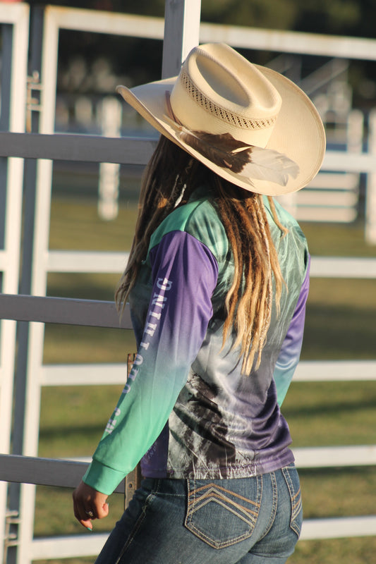 Ladies 1/2 Placket Long Sleeve Shirt - Iris Purple